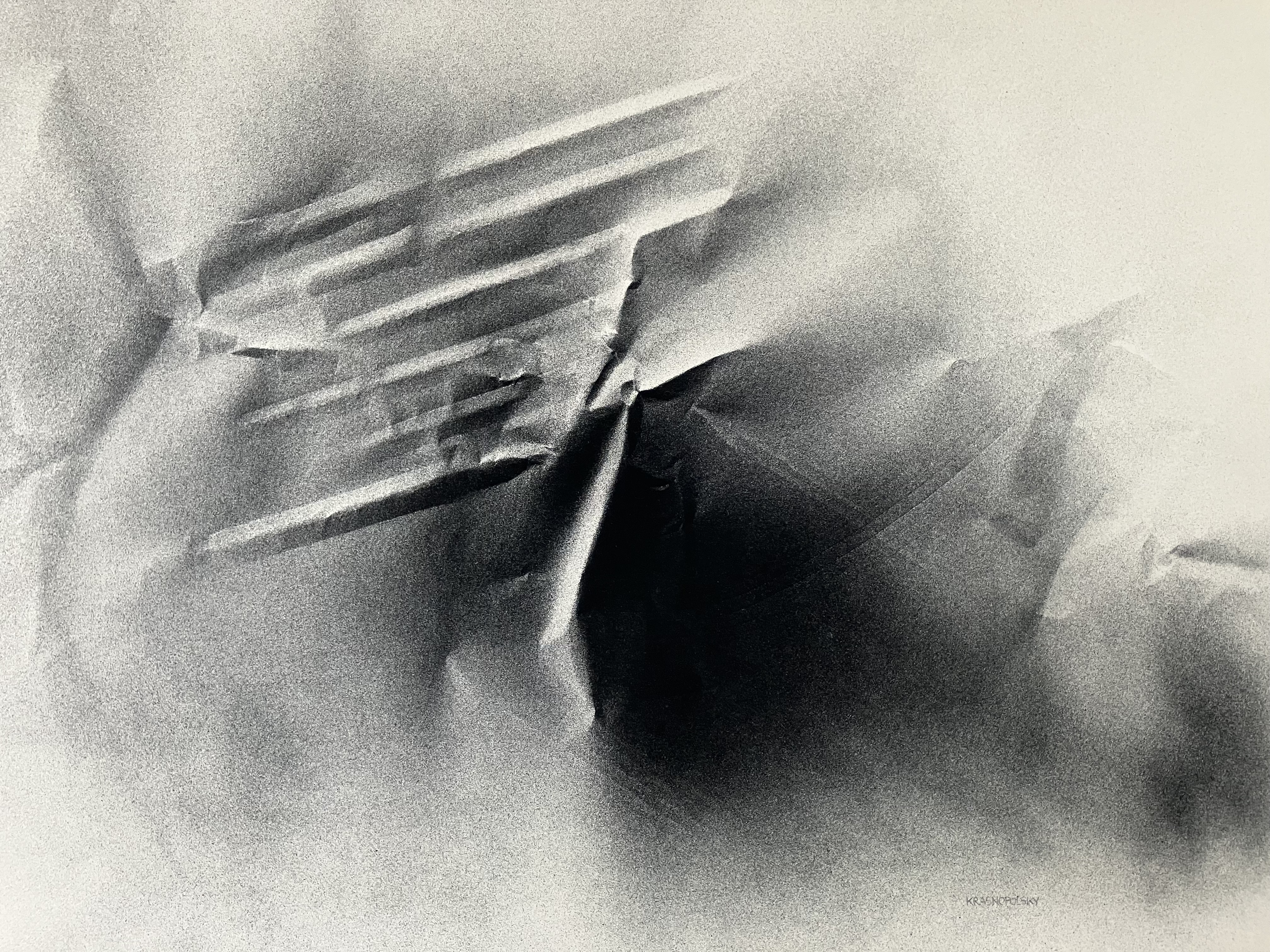 « Guillermo Krasnopolsky est un alchimiste des jeux d’ombre et de lumière. Le jeune artiste d’origine argentine, (…), est fidèle à la pérennité de ses formes, de ses suggestions, de ses traces. Sa toile préserve la douceur ou la violence contenue d’un geste, d’une empreinte. Et dans cette sorte de magma léger, magnifiquement dessiné, Krasnopolsy nous introduit dans les blancs et les noirs de ses grands formats où, peintre intimiste, il trouve pourtant sa plénitude ».