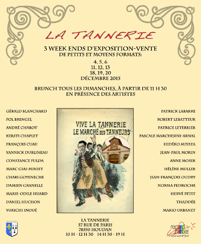 La Tannerie est un espace d’exposition d’art contemporain géré et animé par le collectif d’artistes « Regard Parole ». Véritable pilier de l’activité culturelle du territoire houdanais, la Tannerie propose des expositions de peintures, sculptures, gravures, photographies, dessins, arts plastiques, ainsi que des rencontres uniques avec les artistes qui y exposent